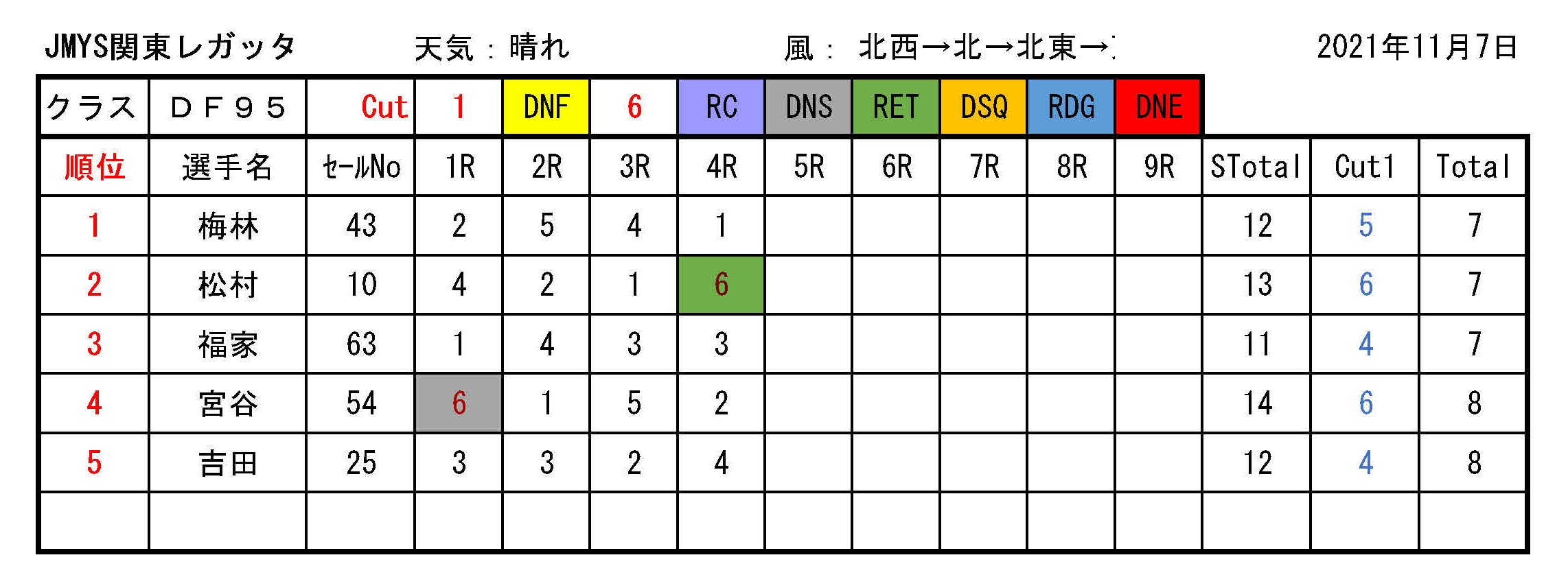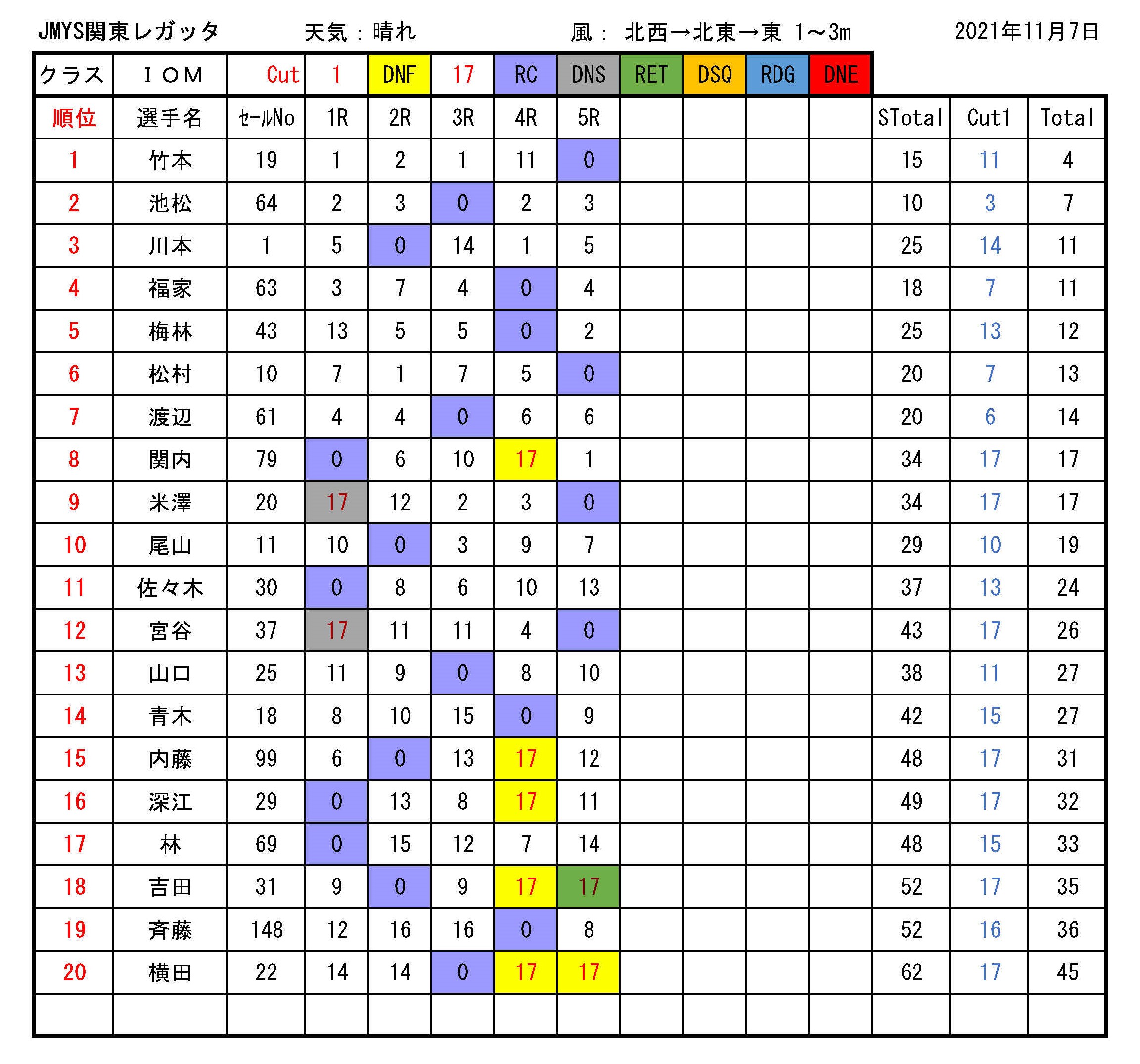 - 11月7日 関東レガッタ レース結果 IOM DF95